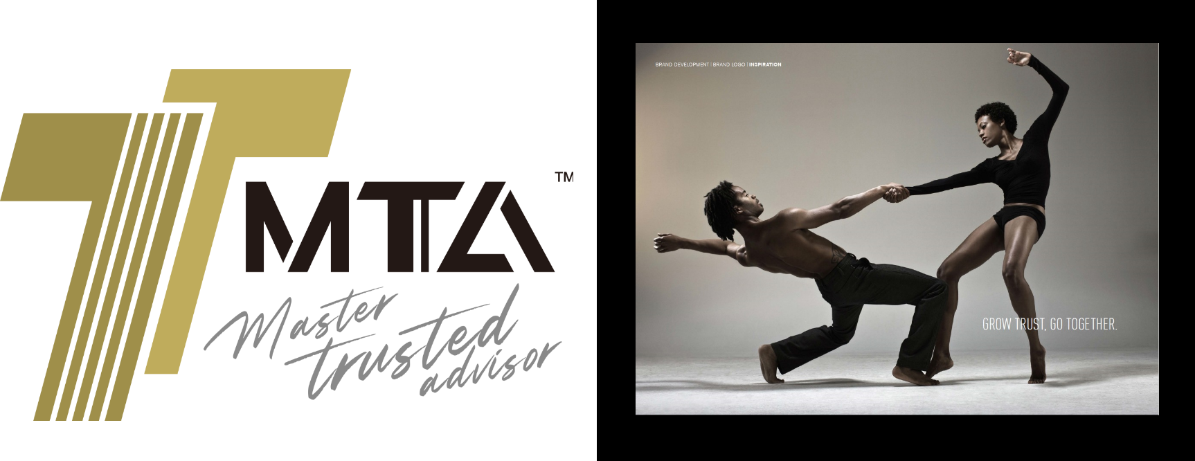 卓越誠信顧問大獎標誌內含意義, Logo的主體成T字分兩邊,這兩邊其實代表一男一女手拉手起舞,因為兩位「信任」對方不會鬆手,所以他們不會跌低,「信任」就是這個T字Logo的精髓。